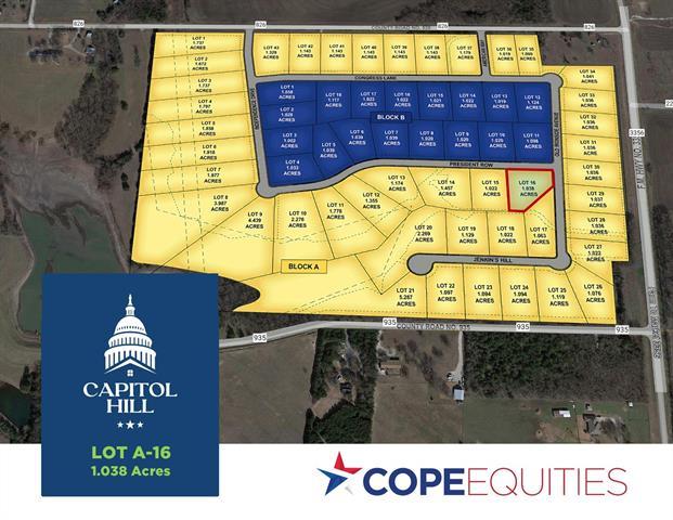 Finally! Luxury 1+ acre lots at affordable prices in the booming DFW area. Capitol Hill Community boasts concrete streets, fiber-optic high-speed internet, the ability to have a guest home, a shop, or an RV garage – all with NO HOA! Bring your own builder and pick any of the still available amazing 1+ acre Lots! Capitol Hill is a new community developed by Cope Equities and Cope Homes, where you can build your home alongside the beautiful Craftsman and Farmhouse style homes already existing in the community. Come and see!