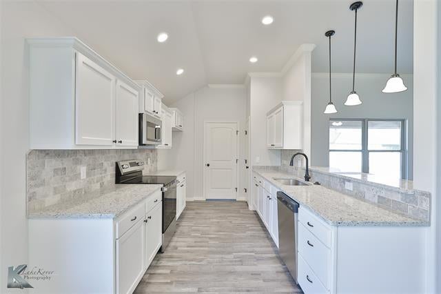 Now includes stainless steel refrigerator AND offering $7,500 seller's allowance! Great new construction in the new Carriage Hills subdivision and Wylie ISD! 1,500 sqft, 3 bedroom 2 bath home with built in microwave, luxury vinyl plank flooring throughout, and dual sinks in primary bathroom, with easy access to retail & restaurants. Fenced backyard, sod, and sprinkler system are all included with this home! This is the total package!Ready for a 30 day close!
