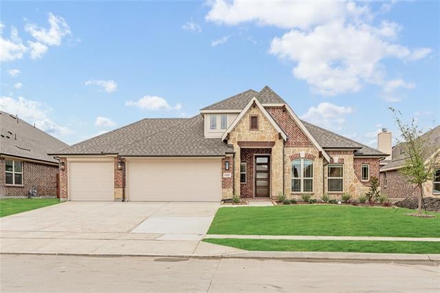NEW, NEVER LIVED IN, READY TO CLOSE! Discover Bloomfield's Carolina, a popular single-story home with a brick and stone exterior, a beautiful 8' 5-Lite Front Door, and a bricked front porch. Step inside to Rotunda Entry where a Study with Glass Doors borders. The open floor plan is filled with natural light from numerous windows, highlighting the Deluxe Kitchen with quartz countertops, SS appliances, and a farmhouse sink in the Charleston-style Soji white cabinetry. Enjoy upgraded flooring throughout, including engineered wood, tile, and carpet; as well as quartz in all baths. The living area features a Stone-to-Ceiling Fireplace with a cedar mantel, and the utility room includes upper cabinets. A fully landscaped yard offers trees, plants, stone edging, a sprinkler system, stained fencing, and gutters, along with a Covered Patio equipped with a gas stub for grilling. Energy-efficient features abound in every Bloomfield Home and mortgage financing assistance is available. Blinds and other details complete this home. Visit West Crossing to learn more about this home!