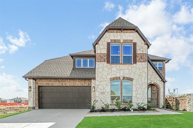 NEW! NEVER LIVED IN. Ready NOW! Bloomfield's popular Magnolia II is a two-story brick and stone home featuring 4 spacious bedrooms, 3.5 baths, and an open floor plan with abundant windows. All are accessed through a beautiful 8' Warwick Front Door. The Study boasts Glass French Doors and a widespread Family Room showcases a Stone-to-Ceiling Fireplace with a cedar mantel. The Deluxe Kitchen includes Quartz countertops, built-in SS appliances, a farmhouse sink, an expansive island, grey Shaker cabinets, under-cabinet lighting, and a walk-in pantry with a glass door. Enjoy Wood floors in common areas, tile, and plush carpet throughout. The Primary Suite offers a bath with separate vanities, a soaking tub, and a shower. Upstairs find the Game Room and a theatre-style Media Room. The home also features a bricked front porch, a gas stub on the patio, gutters, and 2in Faux Wood Blinds. A fully landscaped yard includes trees, plants, stone edging, a sprinkler system, stained fencing, and a cul-de-sac location.