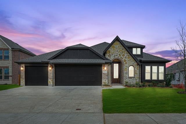 NEW, NEVER LIVED IN, READY NOW! Our Cypress, the most sought-after single-story home, promises to exceed expectations with 4 bedrooms and 2 baths. It seamlessly flows from Study to Deluxe Gourmet Kitchen and Family Room, enhanced by Wood floors and gorgeous granite countertops. The Primary Suite accommodates a king-sized bed and features a tall walk-in closet for ample storage; along with an ensuite bath boasting a soaking tub, separate shower, and dual sinks. 3 additional bedrooms share a well-appointed bath, and the walk-in pantry has a glass door that adds convenience and elegance. Enjoy more enhanced features like blinds, a custom 8' Warwick Front Door, and a Stone-to-Ceiling Fireplace crowned by a cedar mantel. The kitchen boasts Shaker White cabinets, a picket backsplash, and under-cabinet lights. Enjoy upper cabinets in the utility room and a bricked front porch. Fully landscaped yard with trees, plants, stone edging, sprinkler system, and a covered patio that complements the home's charm.