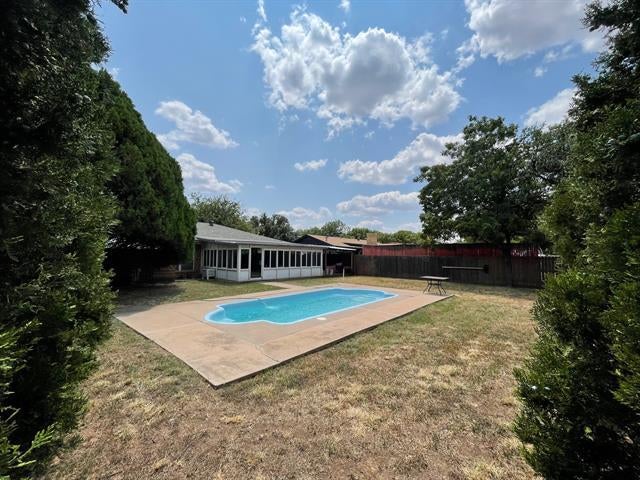 Owner Agent. Big spacious three bedroom, two bathroom home double garage privacy fence backyard in-ground swimming pool huge enclosed back patio with heat and air plus front enclosed sunroom and covered deck on the side of the house. Storm shelter and storage area.
