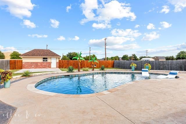 This stunning 3-bedroom, 2-bathroom home offers an array of unique features, including a captivating gunite pool and a 12x20 pool house. The property provides a perfect blend of modern comfort and outdoor leisure, making it an ideal retreat. A dedicated dog run with a convenient water spigot ensures a pet-friendly environment. The exterior ambiance is masterfully complemented by recessed outdoor lighting, enhancing visibility and creating an inviting atmosphere for outdoor gatherings well into the night. The picturesque front yard boasts a serene water fountain. Step inside to find freshly sealed concrete floors, offering a perfect blend of durability and modern style that's easy to maintain. For a festive touch, custom Christmas lights have been tastefully integrated into the home's design, adding a touch of warmth and charm during the holiday season. Plantation shutters adorn the windows, providing privacy and adding a touch of classic style to the interior spaces.