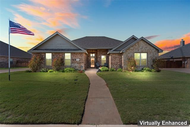 Welcome to this beautifully maintained 4-bedroom, 2-bath home located in the highly sought-after Wylie School District. Step inside and be greeted by new luxury vinyl flooring and plush carpeting. The open floor plan seamlessly connects the living room, dining area, and kitchen, creating the perfect space for entertaining. Expansive windows flood the home with natural light, adding warmth and brightness to every room. The split-bedroom design ensures privacy for the master suite, which boasts an en suite bath with dual vanities, a large walk-in shower, and a spacious walk-in closet. Outside, you'll find an oversized covered patio with a stunning brick fireplace, perfect for outdoor gatherings. The large backyard offers plenty of space for relaxation or recreation. This home combines style, comfort, and practicality, making it the perfect choice for your next move.