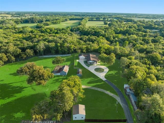 This Collin County ranch is privately tucked away among towering pecan trees at the end of a shared gated private road. Ranch ready, currently ag exempt, with manicured acreage, no exaggeration to say this land is gorgeous! Family friendly home was created for comfortable entertaining with spacious rooms, spectacular natural light, and showcases those panoramic views throughout! The main living area is massive as is the bonus room. Full of charm with walls of windows, great flow throughout this custom home. Kitchen features beautiful cabinetry, tons of counter space, large pantry, big island is definitely the gathering space and connects to large dining area. 4 BR are equally spacious, Main BR ensuite with separate tub and shower. Office adds homeschool or work from home solution. Combo mudroom, laundry with half bath and sink, practical for ranch life. Geothermal HVAC with zone controls, 1 year roof, & sprinkler system. Two barns and shop, all with electricity, the main feeding barn has water. Barns are all well maintained, ready for the next rancher's needs. This unforgettable North Texas ranch can serve the seasoned or beginning rancher, outstanding for those FFA project homes. Wildlife, including deer, are visitors. Property borders beautiful winding creek. Country retreat location, no need to sacrifice convenience or great schools. Located within highly sought after Blue Ridge ISD, near shopping, restaurants and medical resources in Anna or Melissa. Within an hour to Dallas, less than 30 minutes to McKinney and just minutes away from S HWY 121 or HWY 78. Schedule your private tour today!