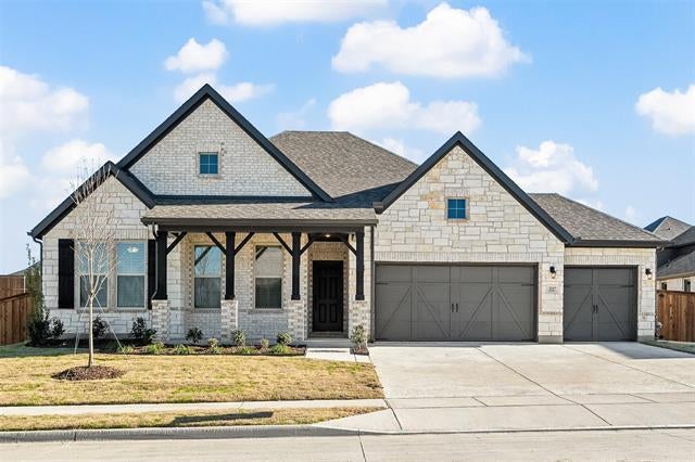 The Manor is an impressive 2,800 sqft, 4-bedroom, 2.5-bath home with a 3-car garage that offers the perfect blend of style and functionality. Featuring a vaulted ceiling in the living area, a spacious kitchen with ample cabinet space, and a dedicated media room, this home is designed for both relaxation and entertaining. Situated on an oversized homesite, it provides plenty of outdoor space while being conveniently located near community amenities. Schedule your showing today! Washer Dryer Fridge and Blinds INCLUDED!