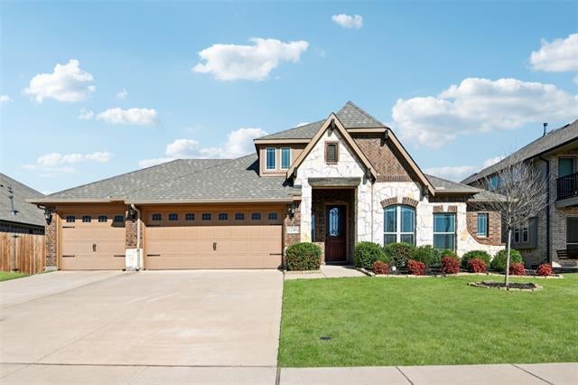 Beautiful, move-in ready lakefront home with stunning views and a flexible, open concept layout designed for modern living! This single-story gem sits on a premium $30K Bloomfield Homes lot and features a versatile floorplan with 4 spacious bedrooms. Flooded with natural light, this home boasts soaring 10’ ceilings, ceiling fans in all bedrooms and the study, and built-in shelves in the secondary bedrooms. The chef’s kitchen is a dream come true with a large island, granite countertops, stainless steel appliances, gas cooktop, walk-in pantry, and an abundance of cabinet and counter space—plus a sunlit breakfast nook with extra built-ins. Thoughtful details include a rounded foyer, rich finishes, and a stylish glass and wood front door. Enjoy the outdoors from your extended covered patio and unwind in the professionally installed 7x7 hot tub - Aquaterra Spas Montecito 45 Jet, 6-person hot-tub-spa (still under warranty). A concrete walkway connects the patio to the driveway, with gates on both sides and a custom shed on a concrete pad for added storage. The garage has a custom storage system and a 220V outlet—ideal for an EV, RV, air compressor, or welder. Gas pipes are plumbed in back and side yard. Located in a fantastic community with miles of scenic trails and a playground within walking distance. Don’t miss your chance to own this lakefront beauty—schedule your showing today!