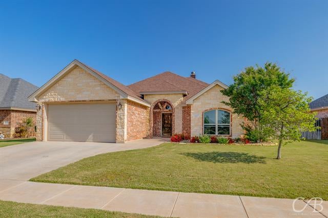 This stunning 3 bed, 2 bath home offers the perfect blend of comfort, elegance, and modern functionality. From the moment you walk in, you're greeted by an open concept layout that seamlessly connects the main living spaces, creating an ideal setting for both everyday living and entertaining. The heart of the home is the kitchen, designed with the entertainer in mind. It features granite countertops, stainless steel appliances, and a large breakfast bar that comfortably seats up to six, perfect for casual family meals or gathering with friends. The living room exudes warmth and character with its rock fireplace and wood beamed ceiling. The beautiful wood beam detail continues into the primary suite, where you'll also find a tray ceiling and plenty of natural light. The relaxing ensuite bath featuring dual vanities, a jetted soaking tub, and a walk in shower with a luxurious rainhead. The additional two bedrooms are generously sized and thoughtfully laid out for comfort and privacy. Out back, unwind on your covered patio, complete with epoxied concrete flooring for easy maintenance and a polished finish. The backyard is beautifully maintained, offering a peaceful outdoor retreat and space to enjoy year round. Situated in a prime location, this home is within walking distance to schools and Kirby Lake, making it an ideal choice for families or anyone who enjoys staying active and connected to the community.