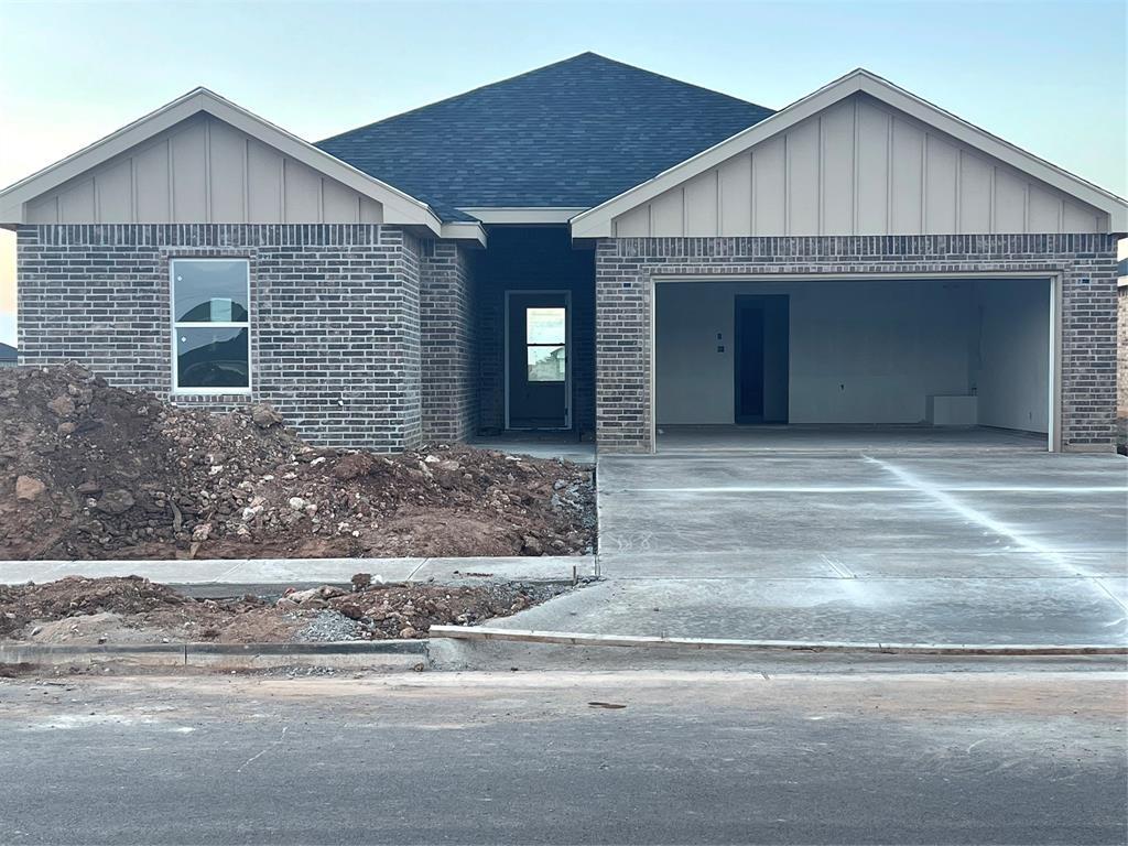 Under construction by Donahue Signature Homes. Completion date is October 30. This is located in Abilene ISD in Cimarron Subdivision. Open floor plan. Kitchen eat in granite island opens into den and dining. Windows overlook covered patio. LVF with no carpet. Price includes sod, sprinkler and fence. 2 car garage and builders warranty. Great location, popular well established Abilene builder.