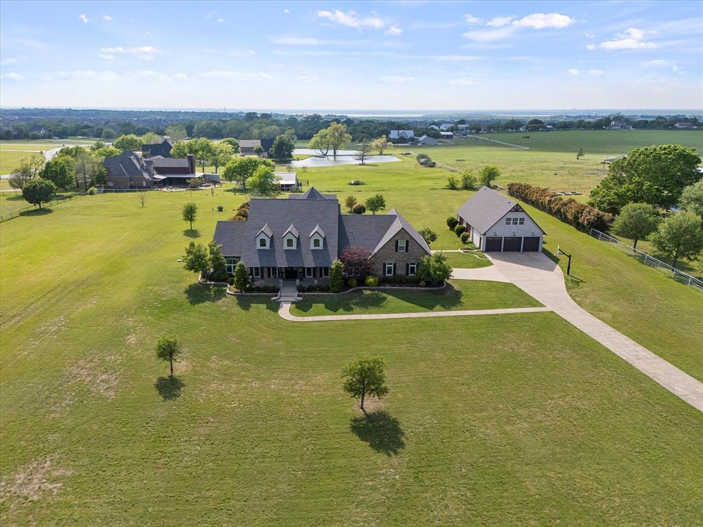 Assumable 2.25% loan could allow considerably less total down payment PLUS lower monthly payments. Nestled over 4 acres in one of the area's most desirable locations, this exceptional estate-style property offers the perfect blend of town & country living. A true rarity, this meticulously maintained home is packed with upscale amenities & thoughtful details throughout. A 60'x30' commercial-grade workshop anchors the property, complete with a dedicated 200-amp panel, 3 garage doors with openers, & two extended roll-up bay doors. Custom-built cabinets & workspaces enhance functionality, while an unfinished upper level offers potential for an office, studio, or guest space. Additional concrete parking accommodates trailers, guests, or extra vehicles with ease. Step onto the welcoming veranda-style front porch, framed & an extended driveway. Inside, an elegant entryway opens into a breathtaking formal dining area, ideal for hosting gatherings. Private home office boasts custom built-ins & tiered ceiling, while rich hardwood floors flow throughout the main living areas. The owner’s suite is a true retreat, complete with a spa-inspired bath featuring heated floors. Flex room allows unlimited uses. Guest suite includes its own entrance & is thoughtfully located near the 3-car garage & spacious laundry room for added convenience. Family room features a custom fireplace & built-ins & seamlessly opens to chef’s dream kitchen adorned with wood ceiling beams, designer lighting, quartz countertops, a copper farmhouse sink, high-end appliances, & custom cabinetry. Cozy breakfast nook overlooks stunning outdoor grounds. Outdoor living is unmatched, featuring expansive summer kitchen, sparkling pool with cascading water features, & luxurious cabana with a half bath—perfect for entertaining or relaxing in style. Upstairs could be bedroom, game room or 2nd living. Equipped media room will be a hit with family & friends. High Efficiency HVAC shutters & many more must see amenities