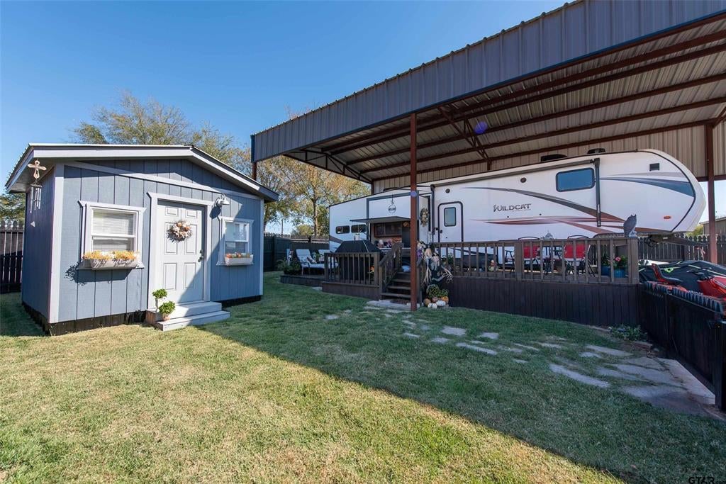 **SELLER FINANCING AVAILABLE AT 4%** Nestled in the prestigious Holiday Villages of Fork, this beautiful 50x80 lot offers an incredible opportunity for both relaxed retired living or a perfect weekend getaway. The property features a spacious24x60x24 carport, providing ample coverage for your vehicles and protecting your immaculate 2020 Forest River Wildcat332RK 5th Wheel, which promises comfort and style for every stay. Additionally, a 150 sq. ft. insulated building on the lot is perfect for housing your washer and dryer, as well as offering extra storage space for all your needs. This well-maintained lot is situated near the world-famous Lake Fork in the stunning landscape of Northeast Texas, making it an ideal spot for fishing, boating, and enjoying the natural beauty of the area. Whether you're seeking a peaceful retirement retreat or a getaway oasis, this property has everything you need to embrace the serene lake life.