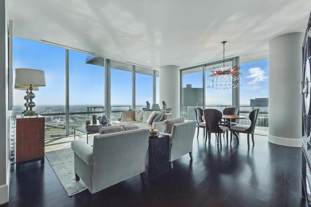 The perfect floorplan in Fort Worth's premier luxury high-rise. The Omni Residences offers unmatched service and a full array of amenities designed to make everyday living seamless and stress-free. Residents enjoy a 24-hour concierge, in-house housekeeping, and a dedicated building engineer. Unit 2401 is located on the 24th floor with beautiful views of downtown Fort Worth and overlooks the private residents-only pool. This refined residence features an open-concept living area filled with natural light that flows into a modern kitchen equipped with professional-grade appliances and a functional dining area. The wraparound balcony enhances the living space with ample room for relaxing or entertaining outdoors. The thoughtfully designed layout includes two bedrooms and two full bathrooms with quality materials and finishes throughout, making it ideal for both full-time living and a lock-and-leave lifestyle. Community amenities include a reservable resident lounge, a state-of-the-art fitness center, a large heated lap pool with cabanas and outdoor grill, as well as a tranquil Zen garden and patio with a firepit. HOA dues cover all utilities except electricity. This condo includes two side-by-side parking spaces on the gated and secure P-1 level. Owners also receive exclusive discounts at the Omni Hotel's restaurant, spa, and room rates, along with access to additional hotel amenities including the rooftop bar, conference rooms, and hotel pool.