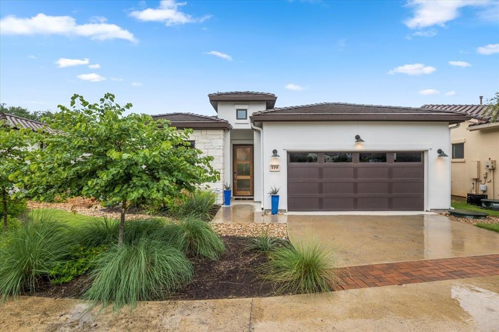 This stunning single-story home offers a spacious and elegant design, perfect for comfortable living and entertaining. The residence features a private study, a great room with soaring 15-foot ceilings, beautiful wood floors, modern fixtures, and a striking floor-to-ceiling stone fireplace. The chef’s kitchen is a true highlight, boasting a luxurious island with custom cabinets, a pantry, granite countertops, and a full suite of high-end Bosch stainless appliances, including a gas cooktop. The primary suite serves as a private sanctuary, complete with a relaxing sitting area, dual vanity with granite countertops, a large walk-in closet which include additional custom shelving, and a beautifully tiled frameless glass shower. The guest suite offers privacy, with an en suite bath featuring granite counters and a tiled shower tub combo. A convenient half bathroom is ideal for daytime guests. Exterior features include a 2-car garage, tile roof, covered rear patio, automated sunshade, covered side patio just off the kitchen adding the perfect amount of area for entertaining your dinner guests or a enjoy a personal Friday night cook out. All located on a beautifully landscaped private backyard with scenic views of the Texas Hill Country, perfect for star-gazing nights. Enjoy resort-style living with endless amenities in this vibrant community. From pickleball tournaments, wine tastings, and arts & crafts to the community garden, dog park, and a gorgeous new 5,000 sq ft clubhouse—there’s always something to enjoy. Don’t miss the famous Wednesday Pink Flamingo nights! Whether you're seeking a full-time residence or a lock-and-leave retreat, this home in Tuscan Village offers the perfect balance of leisure and luxury in a vibrant 55+ community. Live well, Live beautifully, and find your well-being in an atmosphere of connectivity and enjoyment. Ask your Real Estate professional about the Social Membership to HSB that the seller is willing to provide to the buyer.