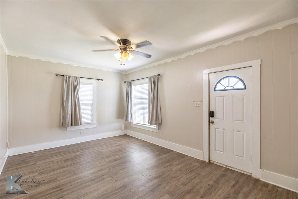 Check out this charming 2 - bedroom, 1-bathroom home featuring vinyl flooring, updated windows, a modern kitchen backsplash, and updated paint throughout. The kitchen is equipped with a gas cooktop and stove. Central Heat and Air were installed in 2017. The property sits on a spacious lot with a fenced backyard lots of shade and a workshop. A separate laundry area adds convenience to the home. Perfect for a first-time homebuyer or as an investment property, this home is conveniently located near schools, shopping, and nestled in a well-established neighborhood. Ready for you to move in!