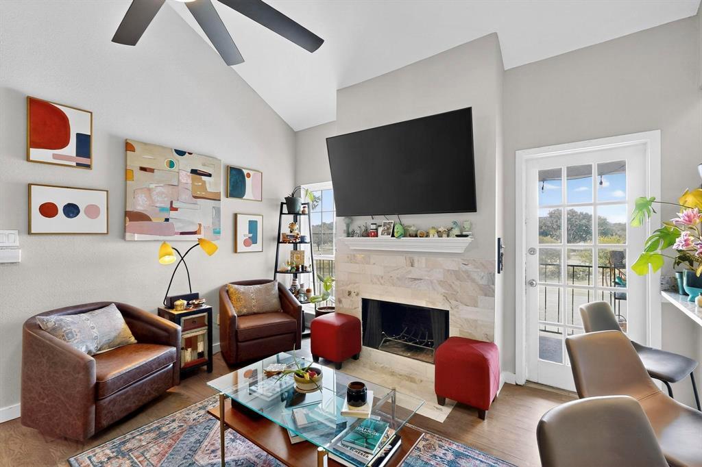 Updated condo with stunning golf course views! Step out onto your private patio and take in panoramic views of the 18th hole at The Clubs at Prestonwood. Inside, the living area features soaring ceilings, Red Oak hardwood floors & a cozy wood-burning fireplace. Updated windows fill the home with natural light and frame picture-perfect fairway views. The west-facing orientation also makes for stunning sunset views across the course! Designed for flexibility, the layout includes two spacious bedrooms, one upstairs and one downstairs, each with its own ensuite bath. Ideal for those looking to house-hack with roommates, host guests comfortably, or create a dedicated home office. Recent updates feature a brand-new HVAC system (installed July 2024) & water heater (installed April 2021). This home offers the perfect blend of privacy and convenience, just minutes from Village on the Parkway, Addison Circle & major highways—including the Dallas North Tollway, George Bush & I-635—for effortless access throughout the metroplex. Ideally located, it’s only 8 minutes to Addison Airport, 20 minutes to Love Field, and 23 minutes to DFW International. Community amenities include a salt water pool, tennis court and pickleball court for endless recreation.