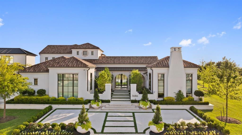 This exceptional corner-lot residence is gracefully surrounded by two acres of lush HOA green space, set deep within the prestigious guard-gated enclave of the Hills of Kingswood. Thoughtfully designed courtyards anchor both ends of the home, one offering a warm welcome, the other inviting you to stay a while. Symmetry and sophistication define the exterior. Manicured landscaping frames a pool that feels as though it glides rather than rests. The home’s east-facing orientation welcomes soft morning sun and allows natural light to pour in throughout the day, enhancing the home’s warmth and brightness. Inside, the experience unfolds through a dynamic play of light and shadow. Coffered ceilings float above paneled walls, and statement marble fireplaces casually steal your attention. Ralph Lauren lighting and Kallista bath fixtures elevate the interiors, while bespoke millwork and refined finishes speak to a level of craftsmanship rarely seen today. A standout feature of this residence is the secondary primary suite privately positioned with its own dedicated entrance. Inside, a custom fireplace sets a wonderful ambiance, complemented by a bar with built-in cooling fridge, marble clad en-suite bath, and a discreet Miele washer and dryer for effortless convenience. It’s the perfect space for long-term guests, multigenerational living, or an elevated work-from-home retreat. Smart home technology is seamlessly integrated throughout. A whole-home water filtration system, hard-wired security, a storm shelter built into the foundation slab, and a standby generator provide both comfort and confidence. The kitchen is architecturally sharp, designed with purpose and presence. Every fixture, every finish, every subtle shadow contributes to the feeling this extraordinary residence has. There’s a quiet power here. A calm rhythm. A sense that everything is exactly where it belongs.