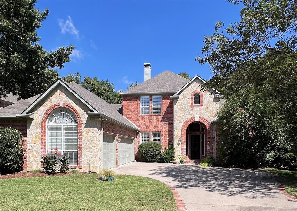 This meticulously maintained home is nestled on a creek lot, which is beautifully landscaped and provides peace and relaxing views. The soaring ceilings create an open and airy atmosphere throughout with tons of natural light, while custom woodwork adds a touch of elegance to every room. The heart of the home is the expansive kitchen, featuring an abundance of cabinets, including custom storage for pots and pans, providing ample storage space for all your needs. The updated primary bathroom is a true retreat, offering a relaxing jetted tub, a spacious walk in shower, dual vanities, and large custom closet. All overlooking the beautiful backyard. Real wood floors extend throughout the first floor. A double sided fireplace connects the family and living rooms, creating a cozy ambiance for family gatherings or quiet evenings at home. The home also boasts a grand office with built in bookshelves, offering the perfect space for productivity or relaxation. Upstairs, you'll find generously sized secondary bedrooms with a shared bathroom, ideal for family or guests. Additional features include a formal dining room with barrel ceiling, oversized laundry room with a sink and room for a freezer or extra fridge. And an oversized three car garage for any additional storage and parking.
