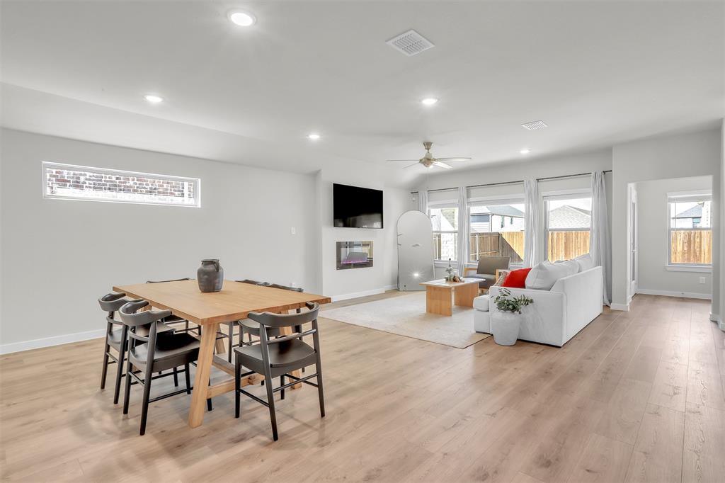 Better than new! Barely lived in 1 story home and an absolutely gorgeous open space concept home. 4 beds, 3 bath house and plenty of common space for gatherings. Huge island with seating in the kitchen. Tons of cabinets and meal prep space and a huge pantry. Beautiful electric fireplace in the living and lots of natural light. Sturdy LVP flooring. Nice backyard with a covered patio and the HOA is loaded with amenities such as pool, clubhouse, basketball court, dog park, playgrounds for the kids, neighborhood gym, and more. Tankless water heater. EV charger included in garage. 5 min from Princeton and 15 min from 380 and US-75. McKinney ISD.